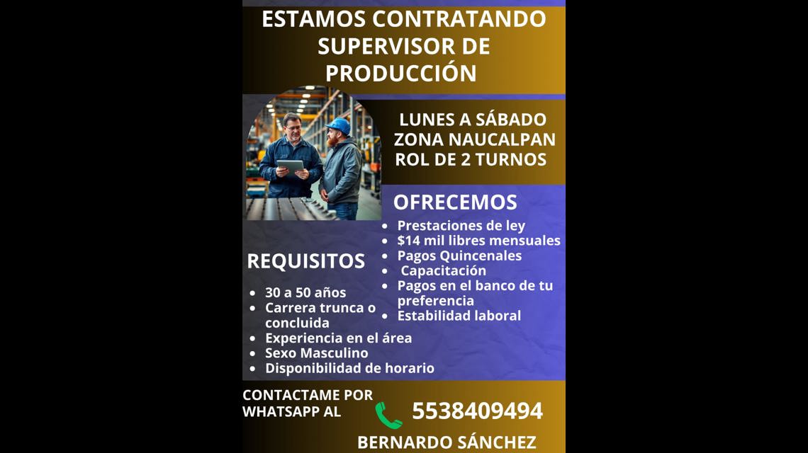 Mínimo 3 años en la industria manufacturera como supervisor (comprobable)